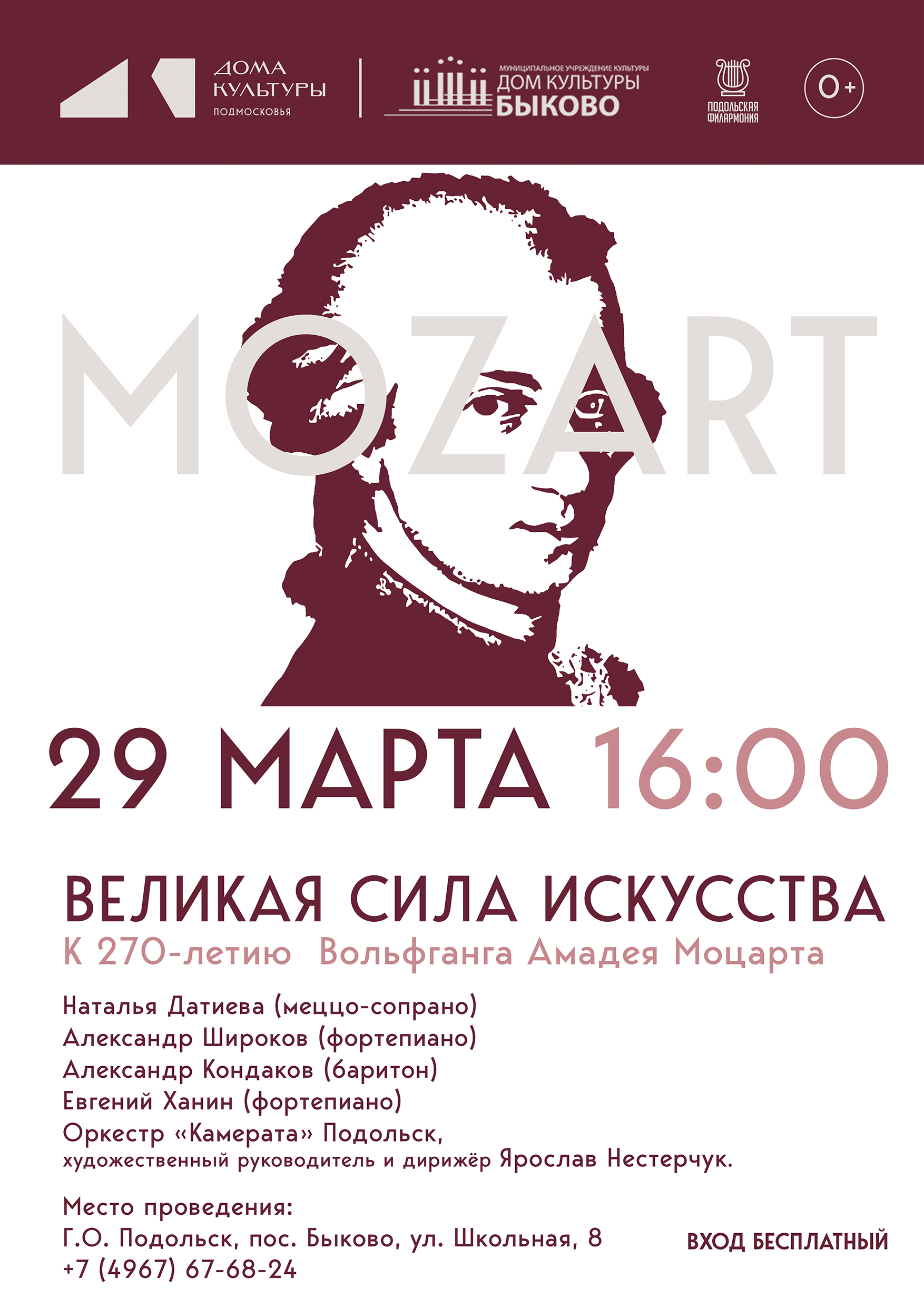 Приглашаем вас на концерт «Великая сила искусства», посвященный 270-летию Моцарта.
