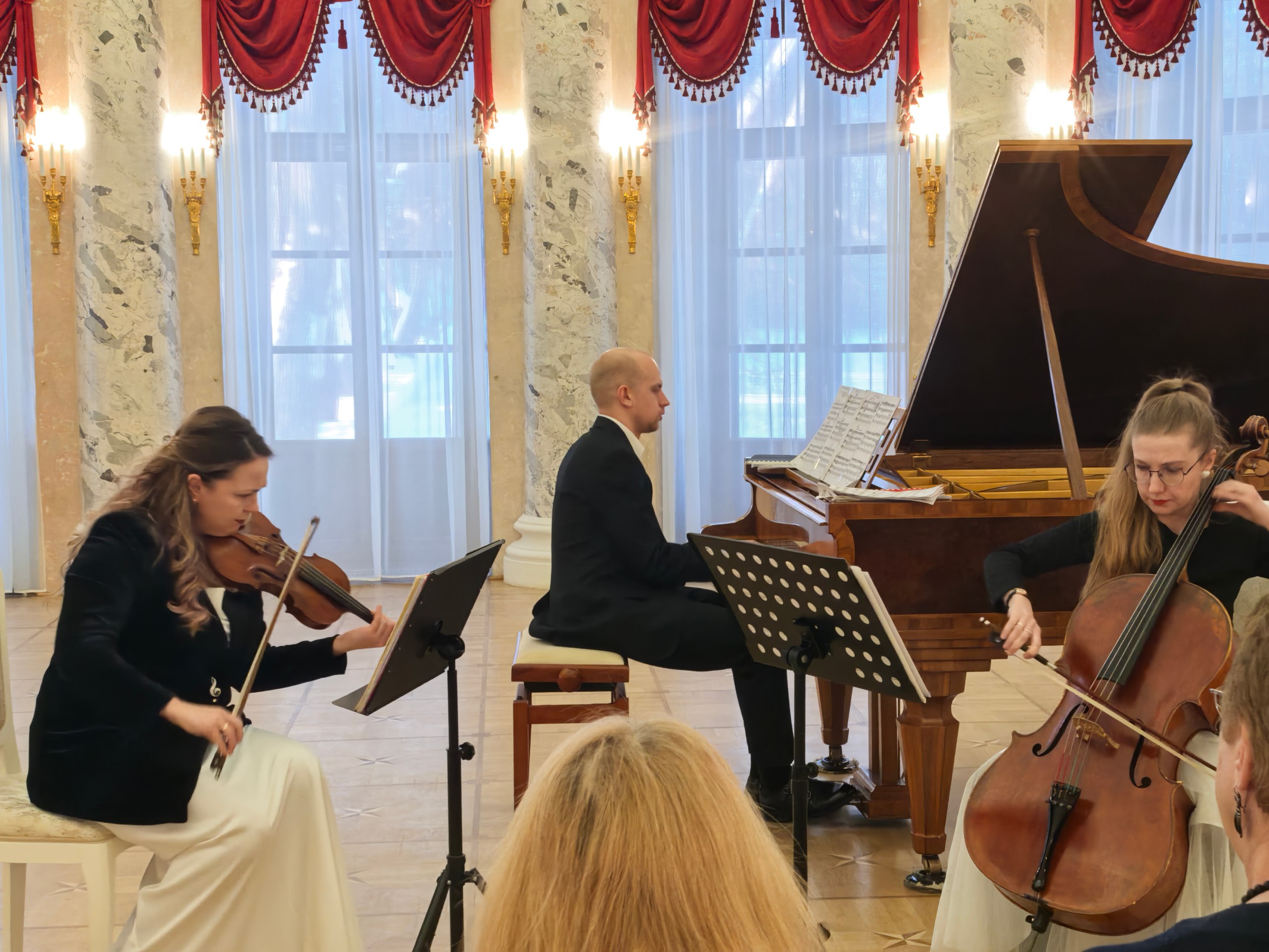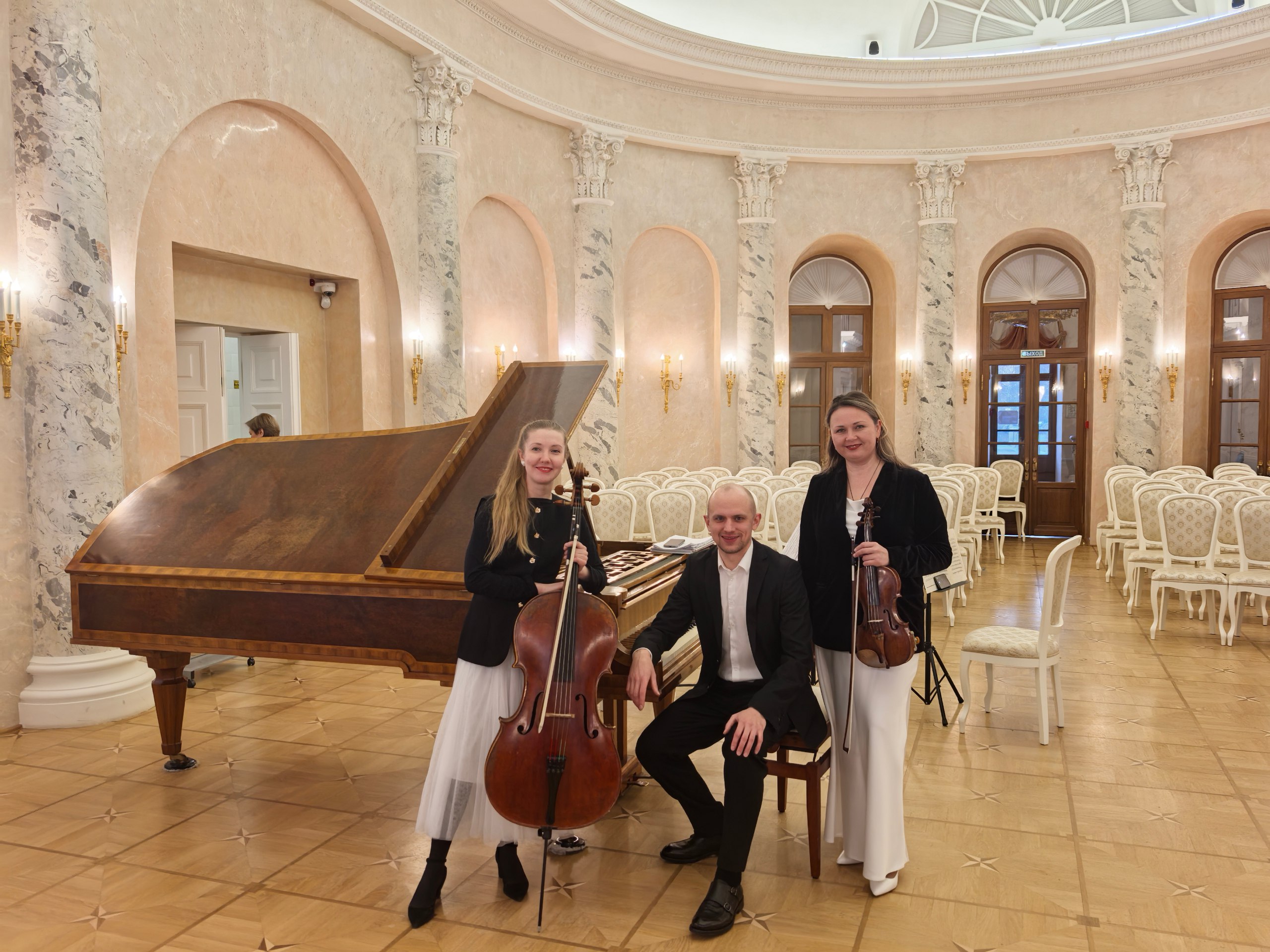 Фортепианное трио имени Микаэла Таривердиева в составе Анастасии Кускашёвой (скрипка), Екатерины Семеновой(виолончель) и Александра Широкова (фортепиано) представило глубокую и проникновенную программу.