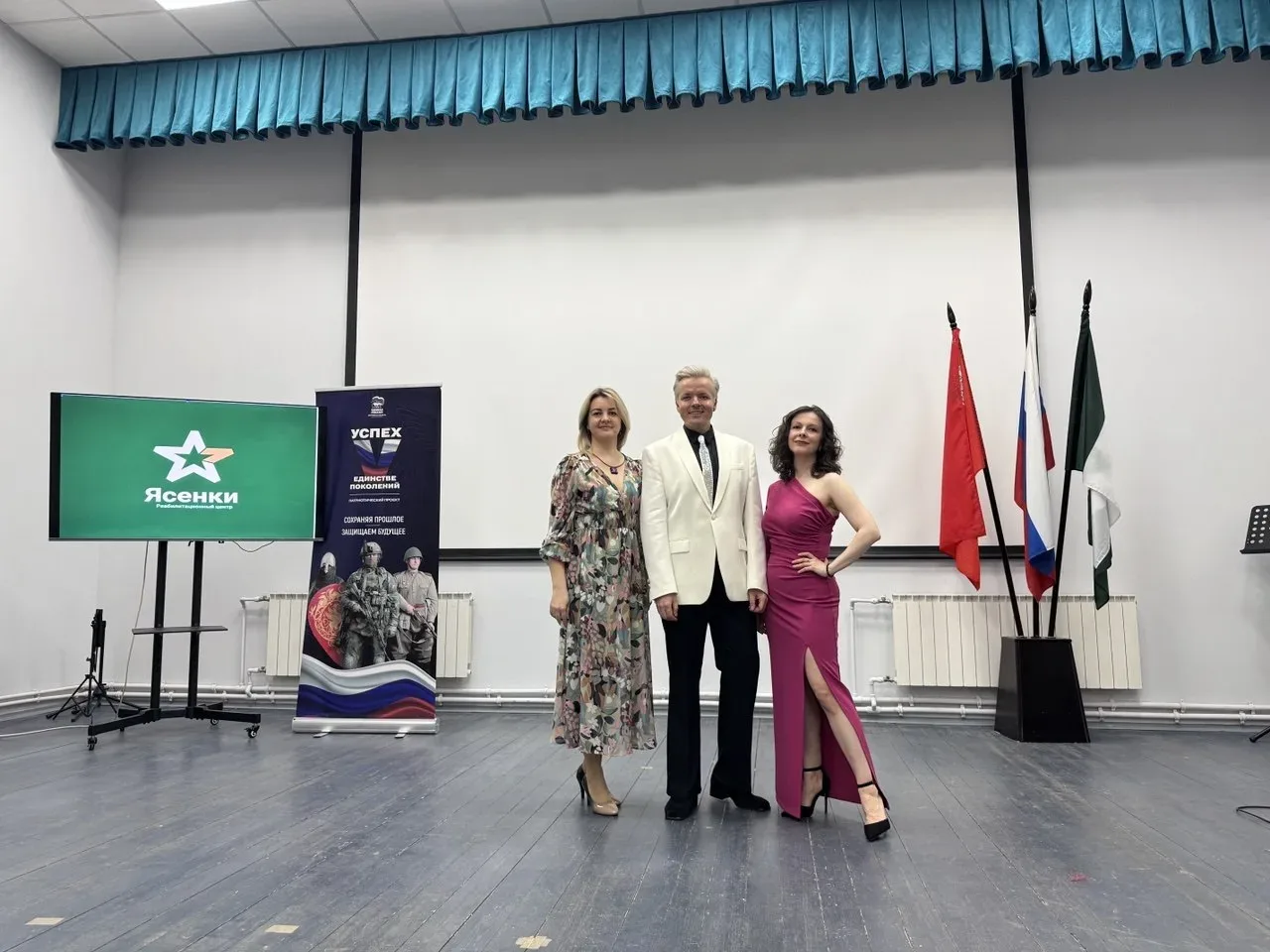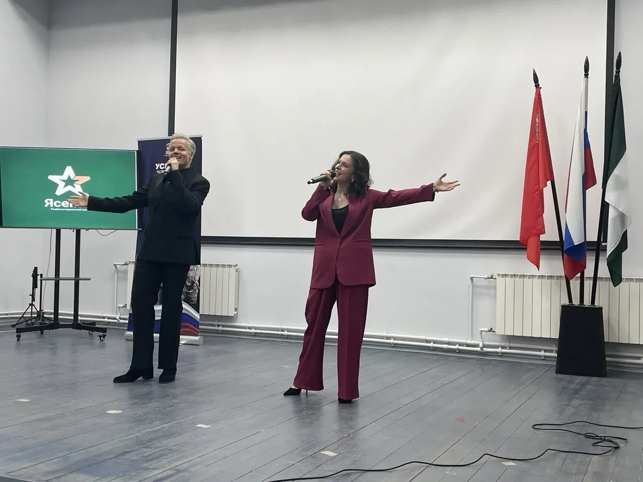 Солист Подольской филармонии Николай Агафонов и руководитель вокального коллектива “Форте” “Дома культуры имени 1 мая” — Анастасия Жердева исполнили яркие дуэты и сольные номера.
